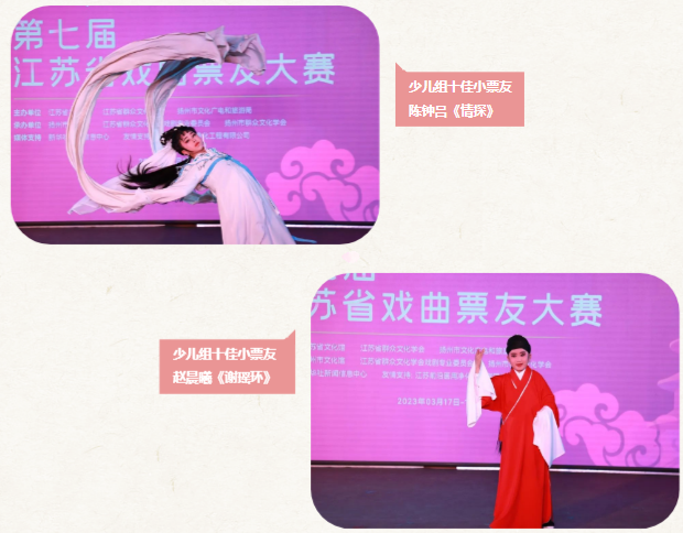 由南京市文化馆选送的,秦淮区文化馆南京青年越剧团的演员缪伟、周丽荣获“十佳票友”称号,南京青年越剧团小花班小演员王媛、陈钟吕、赵晨曦荣获“十佳小票友”称号,贺绘羽获“优秀小票友”称号。
